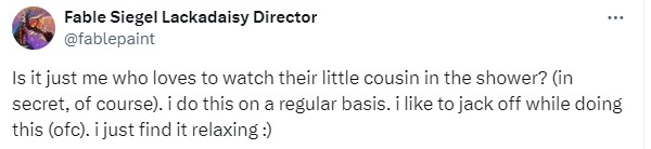 @fablepaint Could you explain that? Or will you be silent like the others? It is unquestionable that almost the entire Lackadaisy community is rife with pedophiles, and clearly this is not an isolated case. Your community disgusts me immensely full of filthy pedophiles, like you.